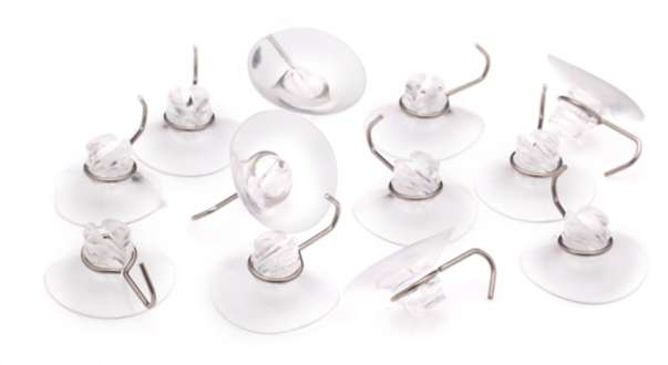 Saugnäpfe, zum Einhaken und -stecken von Lichterketten auf glatten Oberflächen, Grösse: 3,5 cm Ø, Länge Haken: 2 cm Ø, Inhalt: 12 Stück.