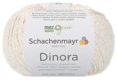 Schachenmayr Dinora. Wie viele andere Schachenmayr-Garne gehört auch Dinora dank ihrer Garnzusammensetzung zur MEZ-Green-Linie: Die Viskose stammt aus einer zu 100% nachhaltigen Forstwirtschaft und der Polyesteranteil aus recycelten PET-Flaschen. So strickt bei all Ihren Vorhaben das gute Gewissen mit. Wie wäre es also mit Pullis oder Jäckchen, die angenehm kühl auf der Haut liegen? Der runde Faden sorgt für ein ausdrucksstarkes Maschenbild, das wunderbar ineinanderfliesst und sowohl schlicht als auch als Struktur- oder Lochmuster schön zur Geltung kommt. Also: Wählen Sie einen der schönen, leicht glänzenden Farbtöne aus und schon kann’s losgehen!