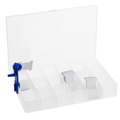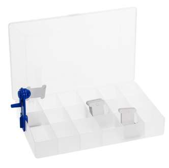 Stickgarn-Box zum Unterbringen von Stickgarn, 18 Fächer, mit Garnaufwickler und 50 Wickelkarten aus Pappe. Grösse: ca. 28 x 18 x 3,8 cm, einzelnes Fach: 4,3 x 5,5 cm. Material: Kunststoff.