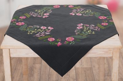 Stickmitteldecke "Pink Flowers", zum Besticken in Platt-, Spann-, Stiel-, Knötchenstich und Nadelmalerei. Vorgedrucktes Motiv, randfertig gesäumt, mit 4,5 cm Saum. Komplettpackung: Anleitung, Garn. Stofffarbe: grau. Grösse: 85 x 85 cm. Material: Stoff 100 % Polyester, Garn 100 % Baumwolle.