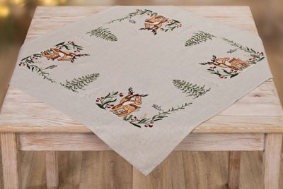 Stickmitteldecke "Winterwald & Rehe", zum Besticken in Stiel-, Knötchen-, Platt-, Margeritenstich und Nadelmalerei. Vorgedrucktes Motiv, randfertig gesäumt. Komplettpackung: Anleitung, Garn, Sticknadel. Stofffarbe: leinen. Grösse: 72 x 72 cm. Material: Stoff 50 % Baumwolle, 50 % Leinen, Garn 100 % Baumwolle.