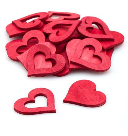 Streuteile "Herzen" aus Holz, 2-fach sortiert, Farbe: rot, Grösse: 4 cm, Inhalt: 24 Stück.