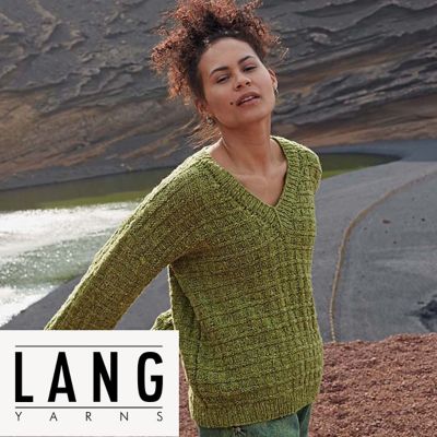 Strickanleitung – Pullover "Mandy" aus Lang Yarns Donegal Tweed+. Ein wunderschöner Pulli im eleganten und zugleich entspannten Look. Der modische V-Ausschnitt verleiht dem Pulli den letzten Schliff. Gestrickt wird dieses Unikat aus der Qualität Lang Yarns Dongegal Tweed+.