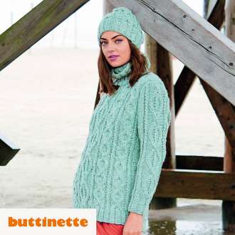 Strickanleitung – Zopfmusterpullover aus Woll Butt Noelle. Starkes Duo: Dieses Set, bestehend aus einem Rollkragenpulli und passender Mütze, strotzt vor Kraft. Das liegt vor allem am markanten Allover-Zopfmuster, das wunderbar plastisch wirkt.