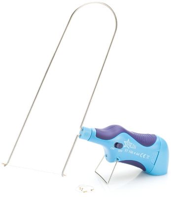 Styropor-Schneider zum sauberen Schneiden von Schaumstoff, Styropor und Moosgummi. Länge: 22 cm. Das Gerät wird mit 4x AA Batterien betrieben (nicht enthalten). Der Schneidedraht wird in den Bogen gespannt und erhitzt. Inhalt: Styropor-Schneider und 3 Schneidedrähte. Für eine Materialstärke bis 4 cm.