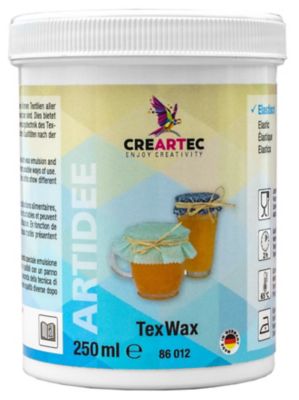Textilmedium "TexWax", verleiht normalem Stoff eine Beschichtung, wie ein Wachstuch. Schmutzabweisend, abwischbar und lebensmittelecht, Inhalt: 250 ml.