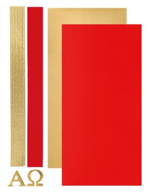 Verzierwachspaket "Klassisch", Inhalt: 2x Wachsplatte 200 x 100 x 0,5 mm, Farben: rot und gold, Verzierwachsstreifen halbrund 1 x 200 mm, je Farbe 10 Stück, Farben: rot und gold, Alpha und Omega 22 mm, Farbe: gold.