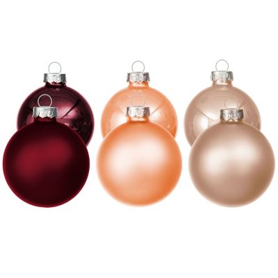 Weihnachtskugeln aus Glas, Farben: dunkelrot, lachs, creme, Grösse: 6 cm Ø, Inhalt: 6 Stück glänzend und 6 Stück matt = 12 Stück.
