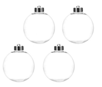 Weihnachtskugeln aus Kunststoff, mit abnehmbarem Verschluss in silber, zum Befüllen, Farbe: klar, Grösse: 8 cm Ø, Inhalt: 4 Stück.
