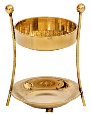 Weihrauchbrenner aus Messing, mit 2 Gittereinsätzen, Farbe: gold, Grösse: 7,5 x 7,5 x 10,2 cm. Ohne Weihrauch.
