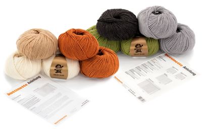 Paketinhalt: fünf 50-Gramm-Knäuel (ausreichend für eine Kissenhülle) und eine ausführliche Anleitung.