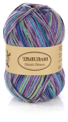 Woll Butt Söckli Ottavo. Sie lieben unsere Söckli-Serie? Dann kommt das hochwertige Garn Woll Butt Söckli Ottavo, das – wie der Name bereits verrät – in Italien produziert wird, genau richtig für Sie. Wie unsere anderen Söckli-Qualitäten überzeugt das feine, enorm ergiebige 4-fach Sport- und Strumpfgarn mit seinen temperaturausgleichenden und feuchtigkeitsabsorbierenden Eigenschaften. Ein Schuss Polyamid und die Superwash-Ausrüstung garantieren für hohe Strapazierfähigkeit und mühelose Pflege. Der farblich perfekt aufeinander abgestimmte Streifen-Look macht Socken, aber auch leichte Pullis und hübsche Kindermodelle zu echten Hinguckern – Sie werden begeistert sein!
