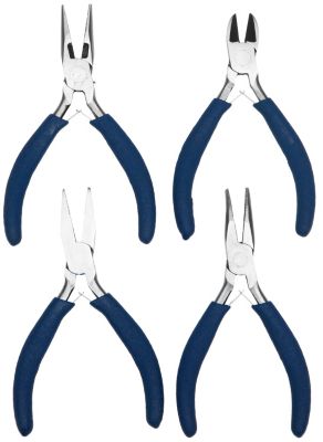 Zangen, mit rutschfestem Griff und Federzug, Länge: 11–13 cm, Inhalt: 1 Flachzange, 1 Kombizange, 1 Seitenschneider, 1 Justierzange.